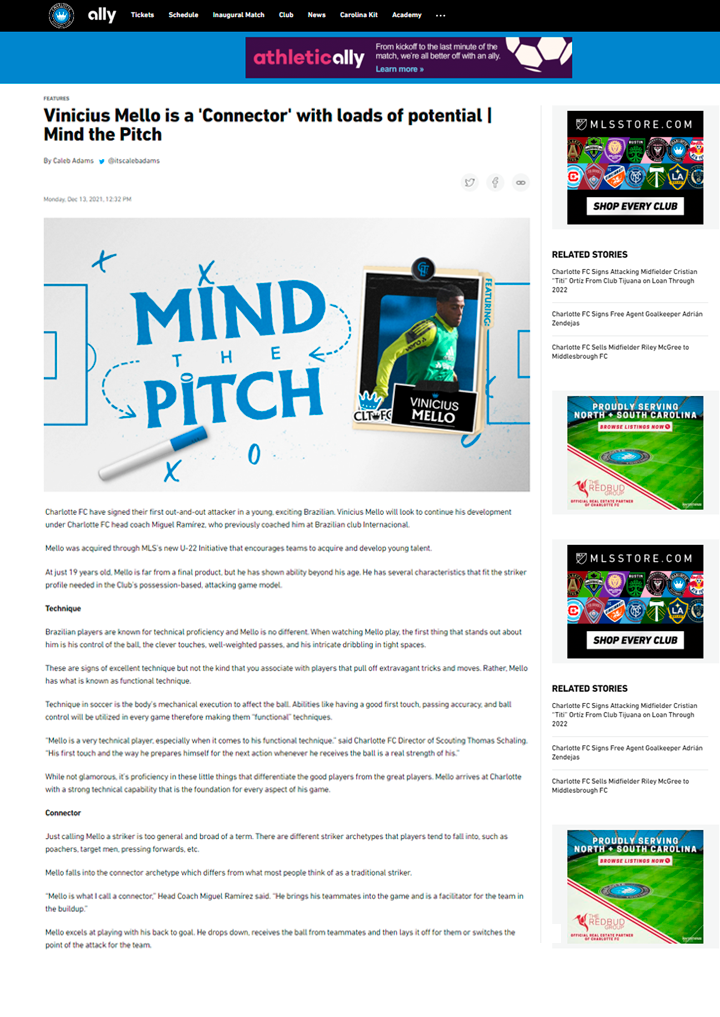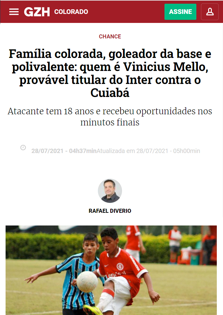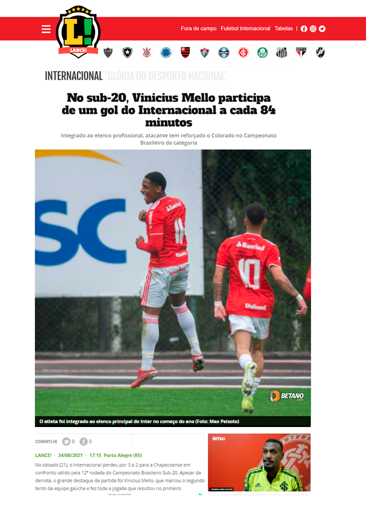 Vini Mello é um atacante canhoto com excelente finalização. Fez inúmeros gols de cabeça, mostrando sua força na bola aérea.